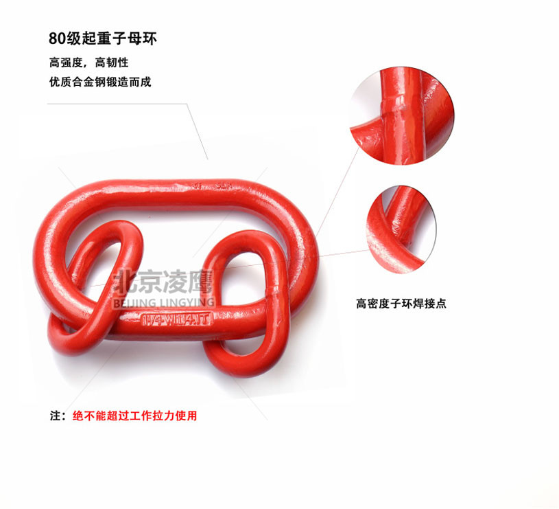 80級起重子母環由優質合金鋼鍛造而成,具有高輕度、高韌性的特點。