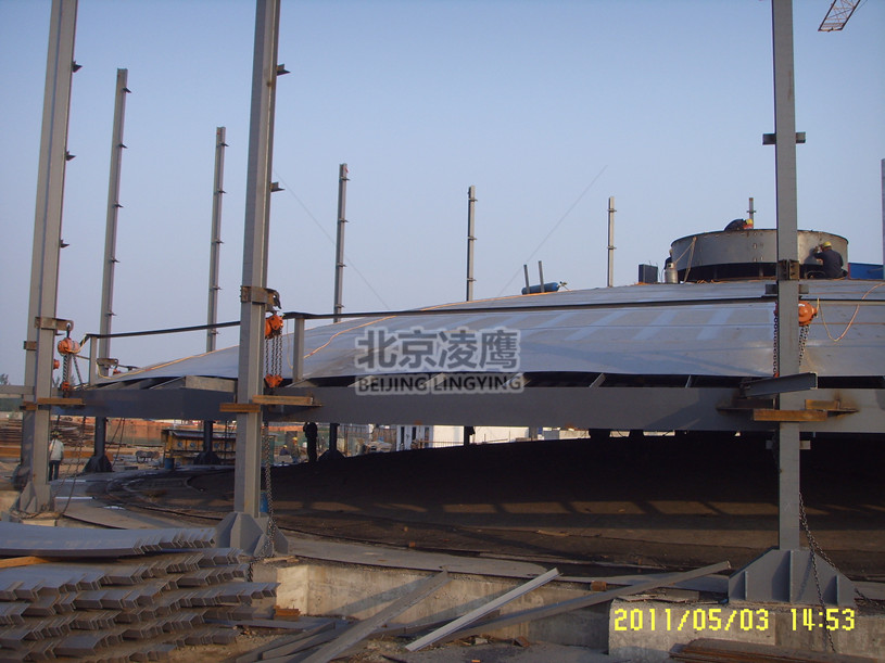 焊罐電動葫蘆起升應同步進行。每提升1/3板高左右,應停下檢查是否同步,上升受力是否均勻。無不同步,受力不均等情況,方可繼續提升。如出現起升不同步、受力不均,則應分別單獨控制調整滯后倒鏈,使其與其他倒鏈處于同等高度,同樣受力狀態,避免發生意外,調整好后即可再次同時提升,直至完成一帶板的提升。
