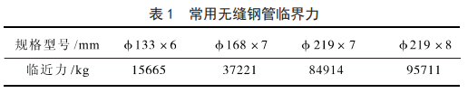 -d)/64,D 為鋼管外徑,d 為鋼管內 4徑;L 為壓桿長度。此提升桿為一端固定,一端自由,取 L=2H。通過計算,得出部分常用無縫鋼管臨界力見表 1。