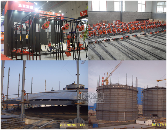 電動葫蘆起升過程中應對電動葫蘆的同步情況進行檢查,至少檢查5次。第一次:罐體提升剛好離開墊塊后,應停機檢查電動葫蘆同步情況,查看所有電動葫蘆鏈條受力是否一致,罐體垂直度是否滿足規范和轉向施工方案要求;第二三四次:每提升1/3板高左右,應停機檢查電動葫蘆同步情況,查看所有電動葫蘆鏈條受力是否一致,罐體垂直度是否滿足規范和轉型施工方案要求;第五次:罐體被提升至規定的安裝高度后,應停機機檢查電動葫蘆同步情況,查看所有電動葫蘆鏈條受力是否一致,罐體垂直度是否滿足規范和專項施工方案要求。在提升過程中出現起升不同步、受力不均時,可通過啟動微調電路分別單獨控制單個電動葫蘆,使整個提升系統處于同步狀態,每個倒鏈處于同等高度,受力狀態一致。為避免意外事故發生,必須進行嚴格檢查,滿足要求后方可進行后續提升工作。